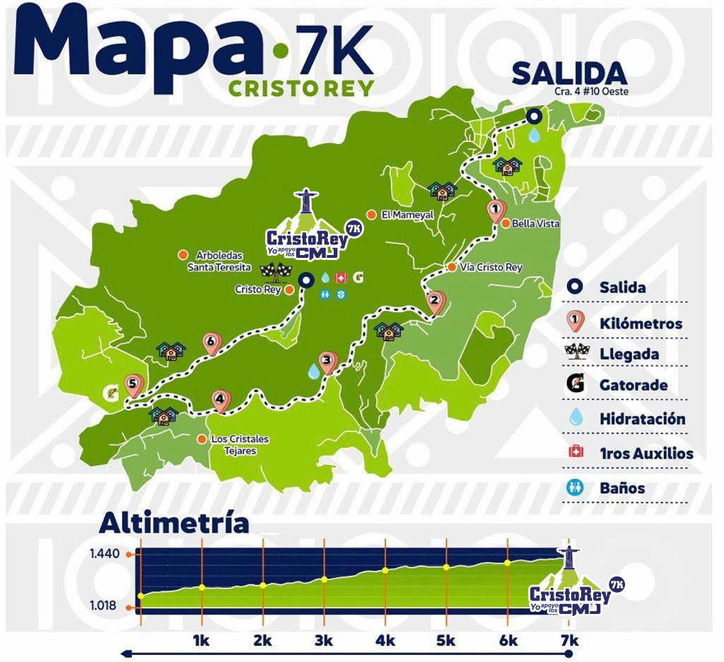 Carrera Atlética en ascenso de 7 kilómetros, saliendo del Antiguó Seguro Social de Bellavista, llegando al monumento de Cristo Rey por la arteria principal, bajo un concepto familiar.